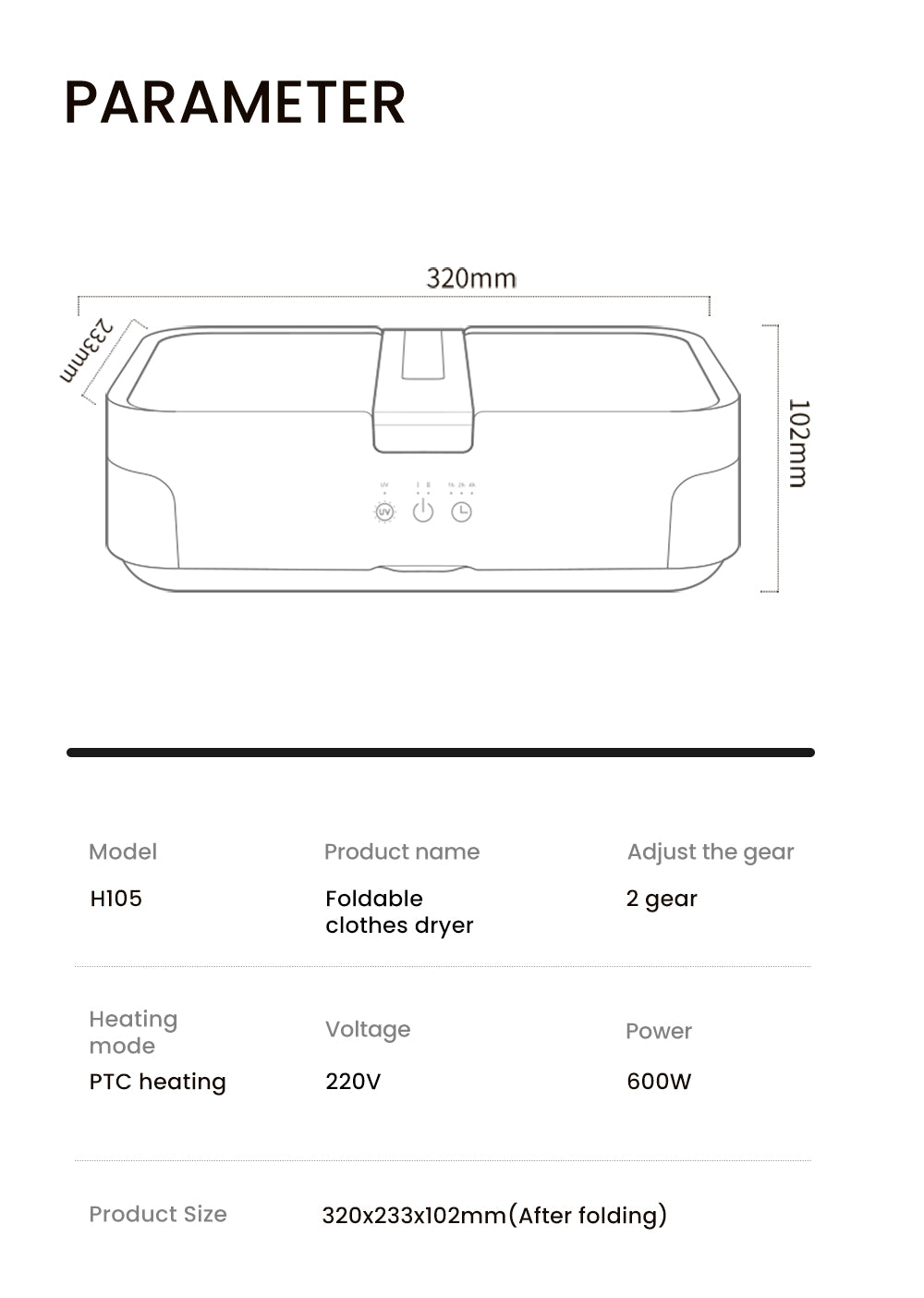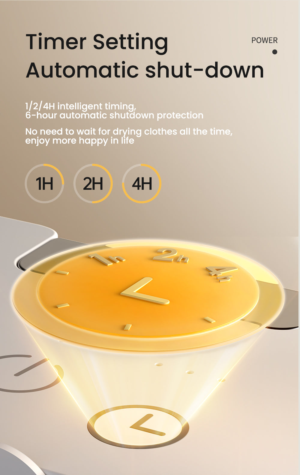 1/2/4H intelligent timing. 6-hour automatic shutdown protection No need to wait for drying clothes all the time enjoy more happy in ilte